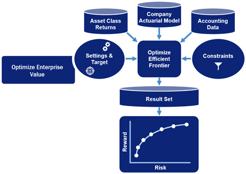 This process allows us to incorporate assets and liabilities into a single optimization, capturing the impact on business, the investment portfolio and their interdependence that can help us better identify risks and opportunities. Peer analysis helps clients understand how they compare to competitors and portfolios are finalized based on company objectives, time horizons and client comfort with risk.